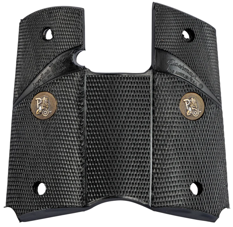 These ultra slim side panels have a slight palm swell giving the user a more positive hold while reducing the overall width. These grips have the classic double diamond checkering pattern.